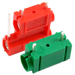 For direct mounting onto printed circuit boards. Single (571 series) and double (572 series). These PCB Sockets have grooves in the outer acetal housing which provides side stacking alignment. Rated at 10A.