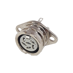 593-0600 Ring Lock DIN Connector - Chassis Socket - Nickel Shell - 6 pin