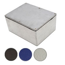 Aluminium enclosure for housing electrical components with an IP66 rating and a powder coated finish. UK stock from Deltron Enclosures.