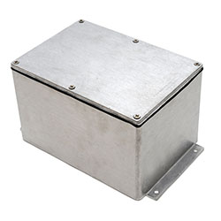 Aluminium enclosure for housing electrical components with an IP66 rating and flanges for easy mounting.