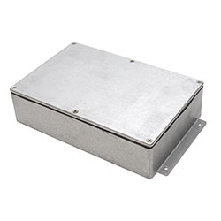 Aluminium enclosure for housing electrical components with an IP66 rating and flanges for easy mounting.