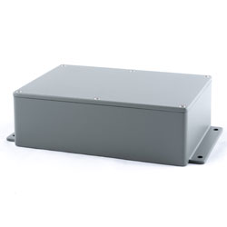 Flanged aluminium enclosure for housing electrical components with a powder coated finish. UK stock from Deltron Enclosures.