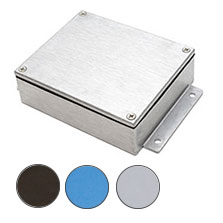 Flanged aluminium enclosure with an IP66 rating and nylon coated finish. UK stock from Deltron Enclosures.